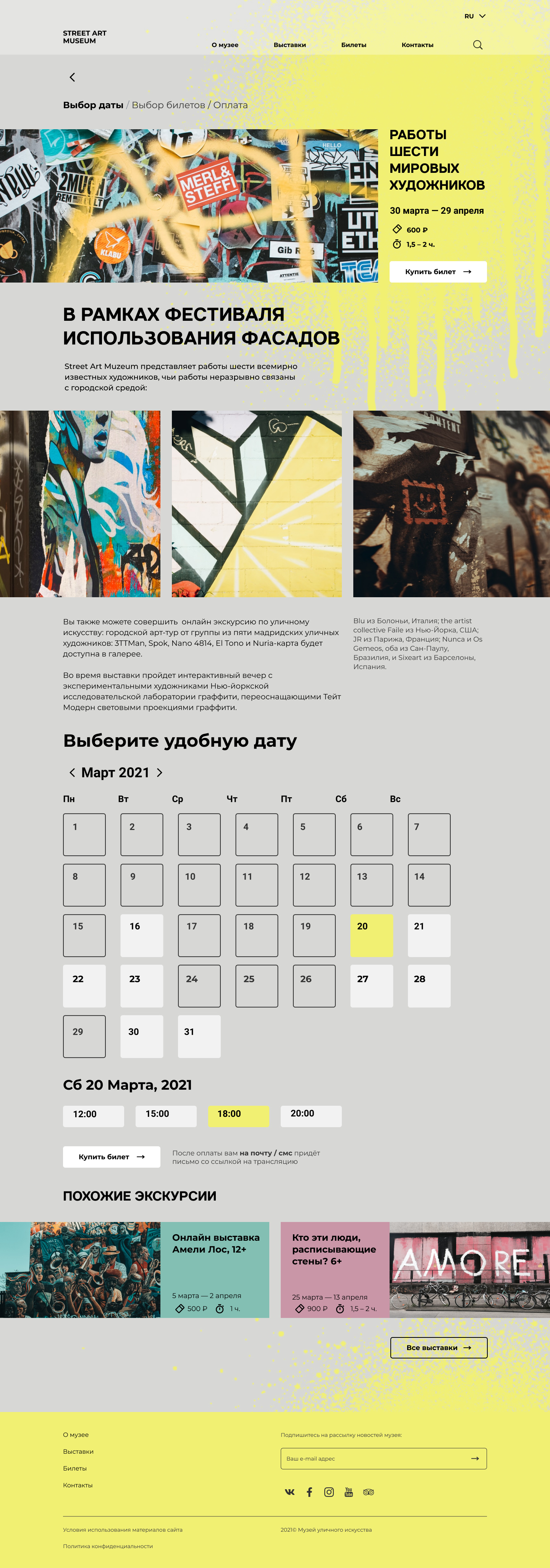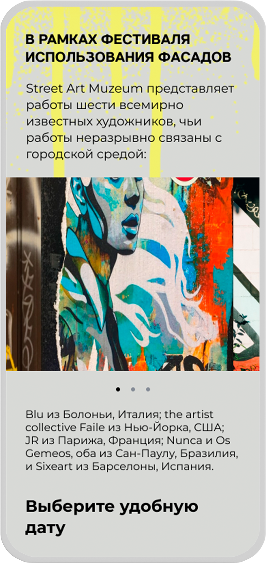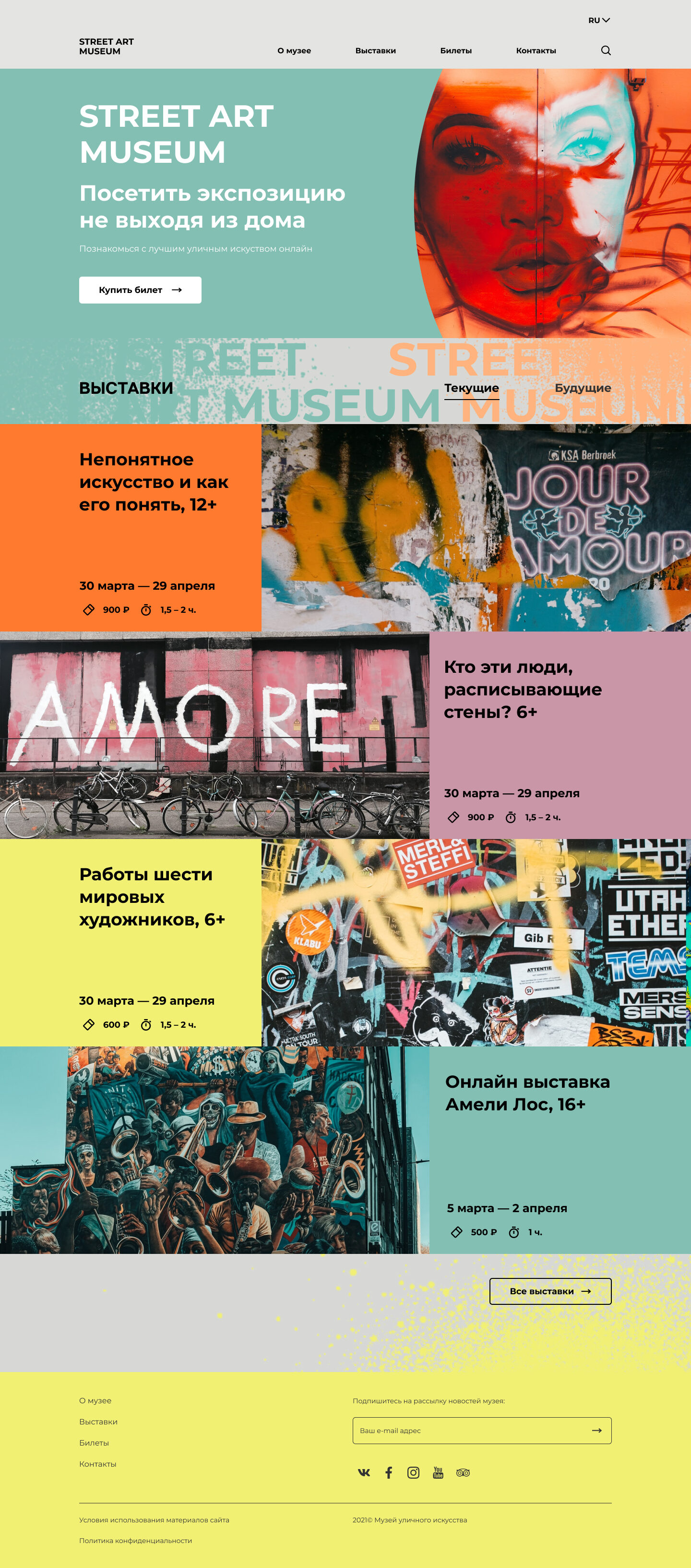 Создать сайт для онлайн-музея уличного искусства с бронированием онлайн-экскурсии. Адаптация сайта для мобильных устройств.