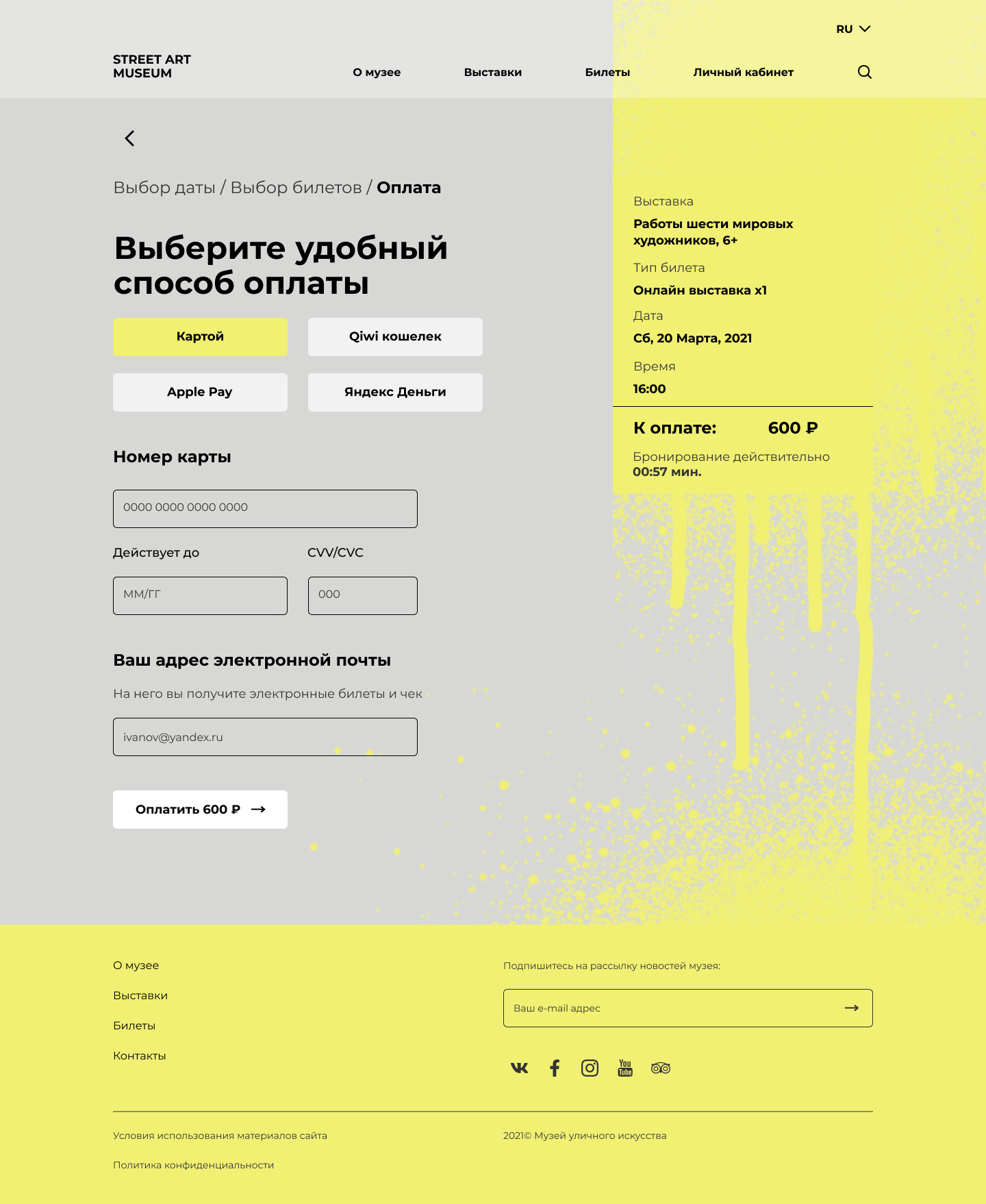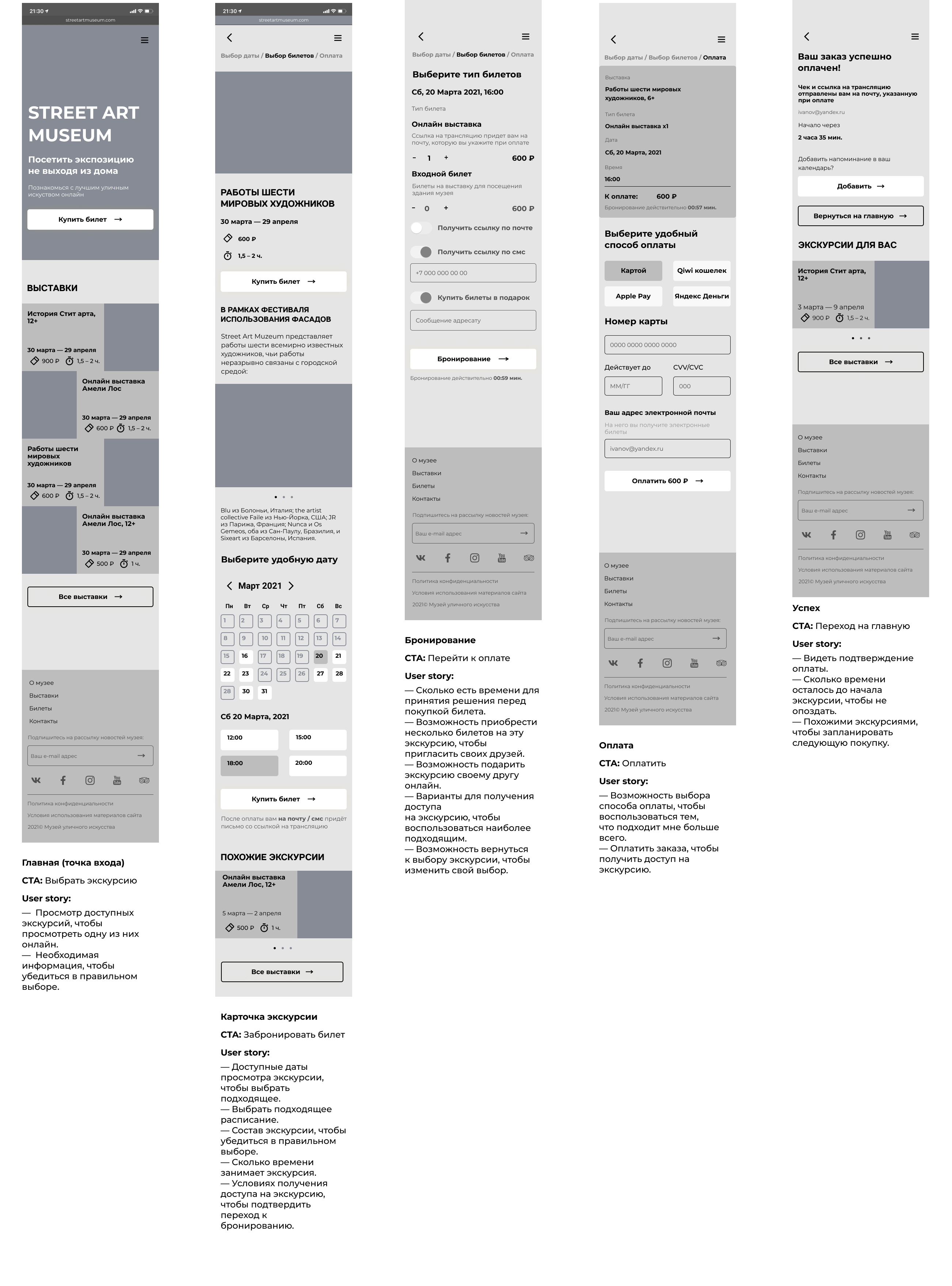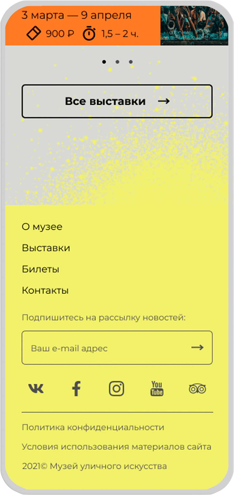Создать сайт для онлайн-музея уличного искусства с бронированием онлайн-экскурсии. Адаптация сайта для мобильных устройств.